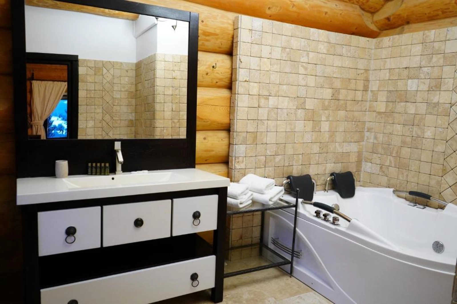 Pentru relaxare, sunteți invitați să vă bucurați de mini-piscina exterioară, de tip jacuzzi/ciubăr, echipată cu hidromasaj, aero masaj și cromoterapie.